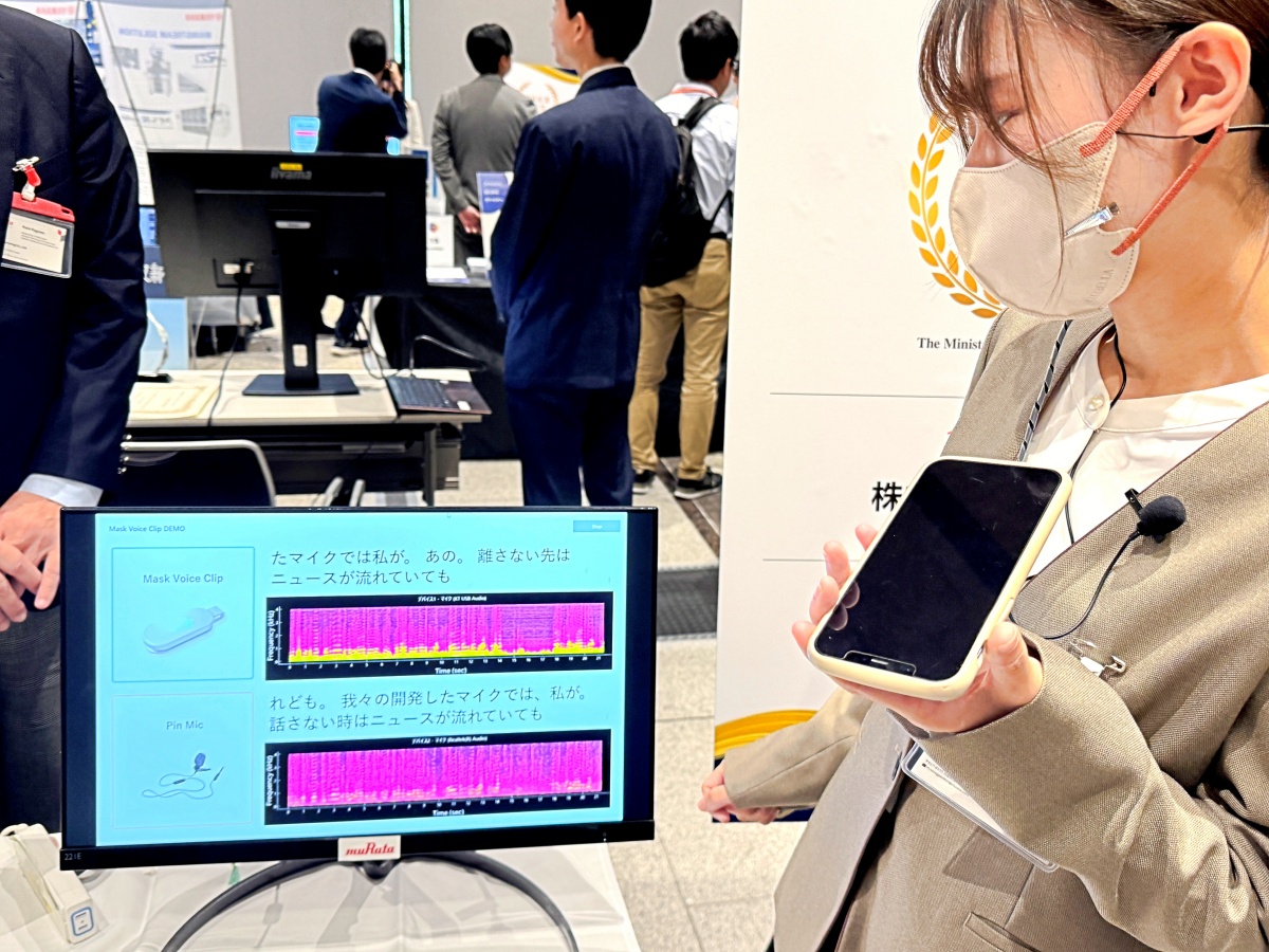 デジタル大臣賞は村田製作所の「AI時代の信頼できる音声入力を実現するマスク装着型デバイス mask voice clip」が受賞。マスク表面の微細な振動を圧電フィルムセンサで検出することで、騒音下や複数話者が同時に発話する環境でも、話者本人の音声のみをリアルタイムかつ高精度に抽出する。