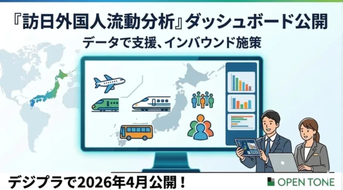 背景には、インバウンド需要の急回復がある。発表によると、2025年の訪日外客数は4,268万人と過去最高を記録した。一方で、地域ごとの観光施策を高度化するには、訪日客が「どこから来て、どこへ向かったのか」を把握する必要があるが、国籍別や移動経路別の分析には手間がかかることが課題だったという。こうした状況を受け、日本観光振興協会は、現場でデータを読み解きやすい新たな可視化ツールの提供に踏み切った。構築にあたっては、観光ビッグデータ分析を手がけるオープントーンの支援を受けた。