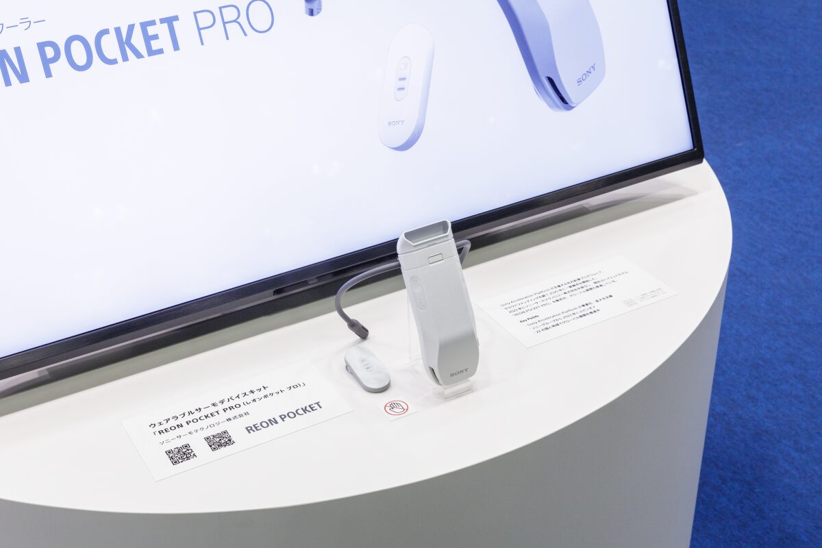 展示パネルには、環境負荷が少ない紙素材「オリジナルブレンドマテリアル」を使用したほか、スタッフユニフォームに「Triporous™(トリポーラス™)」という天然由来の多孔質カーボン素材が使われている点も大きな特徴です。いずれもソニーが開発した環境配慮素材です。
