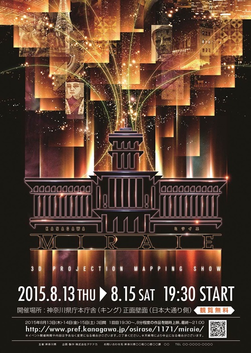 3Dプロジェクションマッピングショー「KANAGAWA MIRAIE-ミライヘ-」が8月13日(木)から15日(土)までの3日間、登録有形文化財である神奈川県庁本庁舎(愛称キングの塔)で開催される。