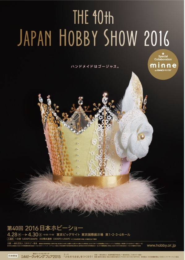 日本ホビー協会は、4月28日から30日までの3日間、東京ビッグサイトで「第40回2016日本ホビーショー」を開催する。今回のテーマは“Celebration(セレブレーション)~ハンドメイドはゴージャス~”。このテーマには、多様な価値観やライフスタイルが求められる現代においてハンドメイドがそのニーズに応え、ハンドメイドの付加価値を上げていきたいという想いが込められている。