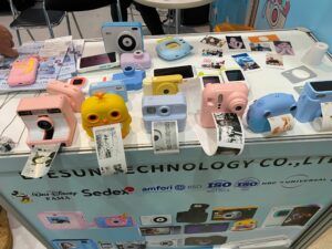Eyesun Technology Co., Ltd. is displaying its “Eyesun Cam” instant camera. These cameras are extraordinary in the fact that they print on rolls of paper as opposed to film. Depending on the model, Eyesun Cams can print over 60 pictures per roll either in black and white, in full color, or in a color specified by an added filter. Compared to the recent popularity boom of Polaroid cameras, Eyesun provides a cheaper and more accessible alternative to take analog photos. Furthermore, Eyesun markets itself as an outlet for children to express their artistic creativity through photography.